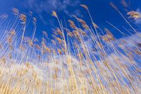 Goud gele riet halmen tegen een Hollandse bewolkte lucht. One2expose Wout Kok Photography. Traditioneel Hollands plaatje met riet dat op gouden korenhalmen lijkt.