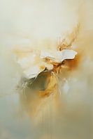 Een subtiel abstract werk waarin de zachte aardetinten worden versterkt door accenten van glanzend goud. De delicate vormen doen denken aan bloemen die zich openen, zwevend in een rustige, etherische ruimte.