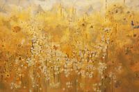 "Goud van de Zonnewende" is een werk dat een uitgestrekt veld van wilde bloemen in gouden tinten toont. De bloemen lijken te schitteren onder een warme zon, terwijl hun delicate witte bloemblaadjes contrasteren met het levendige geel en oranje van het landschap. De achtergrond vervaagt naar zachte, lichte tinten, wat een dromerige sfeer…