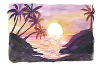 Gouden Bali-ontsnapping bij zonsondergang met palmbomen en sereniteit