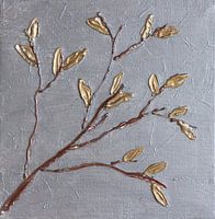 Gouden bladeren met bronzen takken in relief op zilveren achtergrond. Origineel is genaakt op canvas