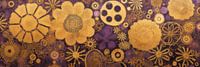 Dit werk toont een uitbundige compositie van gouden bloemen op een diepe paarse achtergrond. De bloemen variëren in grootte en ontwerp, wat zorgt voor een dynamisch en levendig patroon. Het gebruik van goud en paars creëert een gevoel van luxe en elegantie, wat doet denken aan de rijkdom van de art deco-stijl. Deze combinatie van kleuren en vormen maakt het werk een opvallend stuk dat elke ruimte kan verlevendigen en een vleugje weelde kan toevoegen.