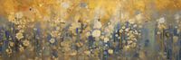 Dit werk presenteert een betoverende bloementuin waar gouden en witte bloemen in overvloed bloeien tegen een achtergrond van zachte blauwtinten. De combinatie van warme en koele kleuren creëert een harmonieus en evenwichtig beeld dat zowel rustgevend als visueel aantrekkelijk is. De bloemen lijken bijna te dansen in het zachte licht, wat een gevoel van beweging en levendigheid toevoegt. Dit werk past perfect in elke ruimte die een vleugje natuur en verfijning nodig heeft, en is bijzonder geschikt voor zowel moderne als traditionele interieurs.