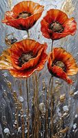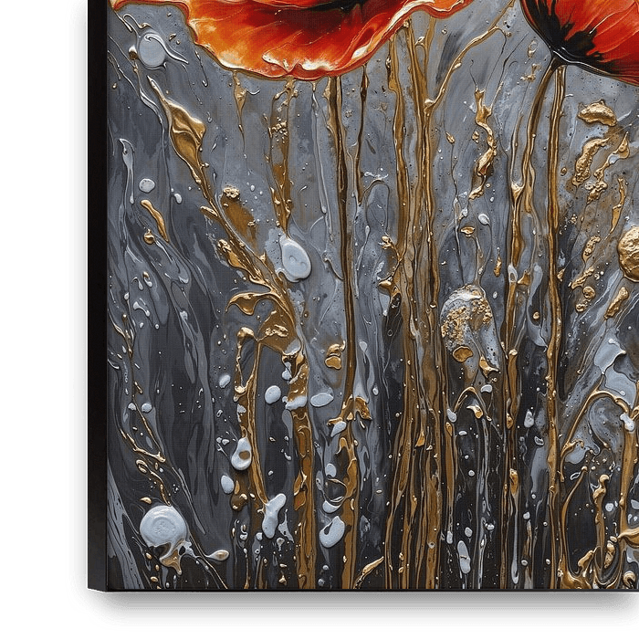 In een verfijnde dans tussen kleur en contrast komt "Gouden Bloesems in Grijze Stilte" tot leven als een meesterwerk van ingetogen schoonheid. Dit schilderij, vervaardigd in gegoten acrylverf, belichaamt de harmonie tussen levendige bloesems en een serene achtergrond, verrijkt met subtiele gouden accenten.