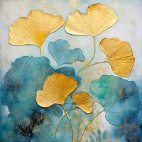 De harmonie tussen teal en goud geeft het werk een etherische sfeer, terwijl de stromende silhouetten de toeschouwer uitnodigen om te dwalen door de kunstenaar's visie. Het is een viering van de natuurlijke schoonheid en de serene pracht van de wereld om ons heen.