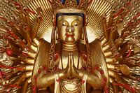 Een biddende gouden Buddha in een tempel in Myanmar