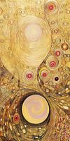 "Gouden Cirkeldans" toont een dynamisch samenspel van gouden en aardse tinten, geordend in hypnotiserende cirkelpatronen. Het werk is uitstekend geschikt om lengte te geven aan een ruimte, door de verticale vorm die de blik omhoog leidt. Dit maakt het een uitstekende keuze voor plaatsing in een lange, smalle ruimte zoals een trappenhuis of een verfijnde gang. De spiralen en ringen brengen een gevoel van beweging en leven, terwijl de gouden kleuren warmte en elegantie uitstralen. Het is een kunstwerk dat zowel rust als een speelse energie brengt, perfect voor het creëren van een uitnodigende en stijlvolle atmosfeer in huis.