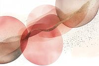 Dit abstracte kunstwerk combineert zachte pasteltinten met vloeiende geometrische vormen, wat elegantie en sereniteit uitstraalt. Overlappende cirkels in roze en beige tinten creëren diepte en beweging, terwijl gouden accenten dynamiek toevoegen. De balans tussen structuur en vloeibaarheid roept rust en harmonie op. Transparante lagen en lichte texturen geven het werk een etherische kwaliteit. Het nodigt uit tot contemplatie en straalt zachtheid en verfijning uit, gecombineerd met een moderne esthetiek. De delicate interactie tussen vormen en kleuren resulteert in een visueel aantrekkelijk en emotioneel resonerend kunstwerk.