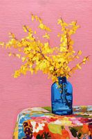 Koop dit stilleven Gouden Forsythia in Blauw no.2 van Studio BB op canvas, aluminium dibond, (ingelijste) fotoprint, behang en ArtFrame, op maat geprint in Fine-Art kwaliteit.