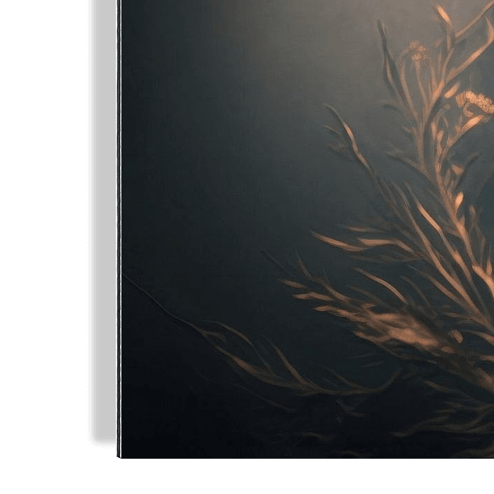 Het geheel straalt een rustige en introspectieve sfeer uit, die de kijker uitnodigt om dieper na te denken over de symboliek van de bloemen en de betekenis van de donkere achtergrond. Het schilderij lijkt te zinspelen op een mysterieus verhaal, dat wacht om ontdekt te worden.