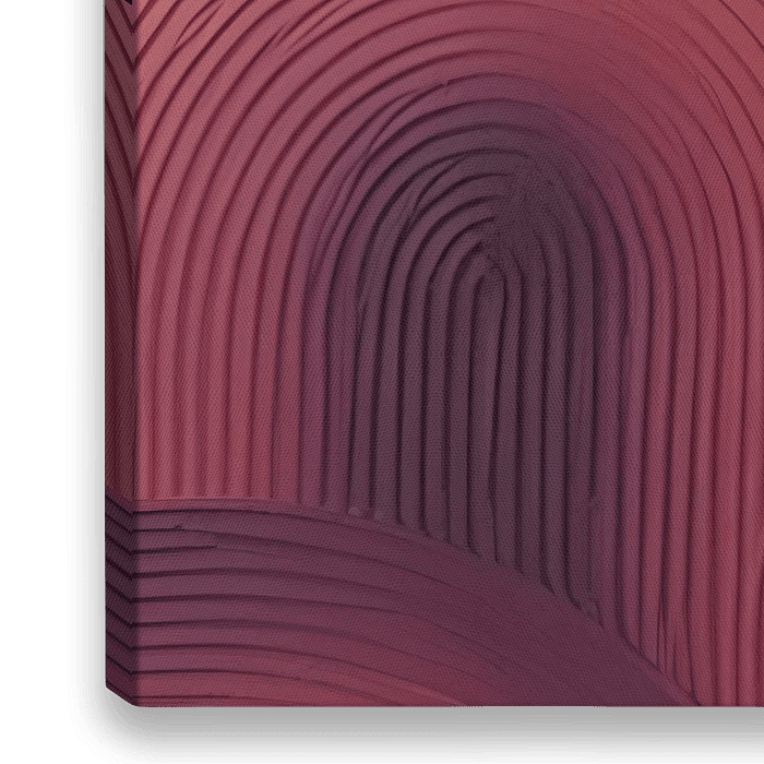Gouden Gloedbogen is een abstract schilderij waarin opeenvolgende bogen als golven van licht over elkaar heen vallen. Diepe tinten violet en bordeaux lopen langzaam over in warm oranje en stralend geel, waardoor het werk doet denken aan een zonsondergang die zich steeds verder uitvouwt. De fijne lijnen volgen de rondingen nauwkeurig en…