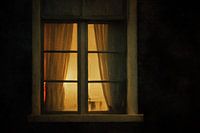 Een raam in close-up, gordijnen die zacht openvallen, en warm binnenlicht dat de nacht raakt. Het beeld is eenvoudig, maar juist daardoor geladen. Je kijkt naar een grens: glas tussen binnen en buiten, privacy en nieuwsgierigheid. De gordijnen geven beweging en zachtheid, alsof er net iemand langs liep of net de kamer in kwam. Het licht…