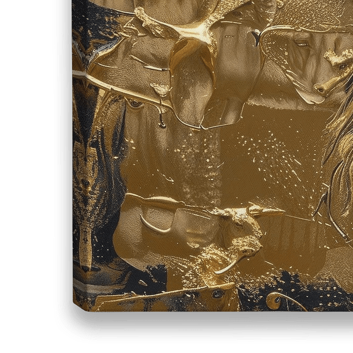 Dit unieke kunstwerk combineert de robuuste uitstraling van een Schotse Hooglander met een luxueuze gouden textuur. Het gedetailleerde portret van het dier komt krachtig naar voren tegen een achtergrond van rijke, glanzende goudtinten die diepte en verfijning aan het beeld toevoegen. De subtiele zwarte accenten zorgen voor contrast en…