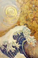 In "Gouden Maan boven Kanagawa's Golf" komt de beroemde Japanse houtsnede 'De Golf van Kanagawa' samen met de mystieke glans van de maan. Dit werk is een moderne vertolking waarin de bruisende golven en de gouden maanspiraal een brug slaan tussen traditionele kunst en hedendaagse creativiteit. De kracht van de golven, met hun rijke palet aan blauwtinten, contrasteert met de warme gouden maangloed, waardoor het een gedenkwaardige en spiritueel geladen scène wordt.