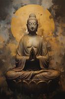 Mijn inspiratie voor dit werk kwam voort uit mijn fascinatie voor de spirituele reis van de Boeddha en de rust die zijn aanwezigheid uitstraalt. Er zijn momenten in het leven waar we allemaal op zoek zijn naar innerlijke vrede en verlichting, en dit schilderij is een reflectie van die zoektocht. De sfeer van het schilderij is tegelijkertijd zowel kalmerend als verheffend, met de gouden zon die een warmte en positieve energie uitstraalt.