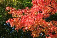 Amberboom gloeiend in de herfstzon