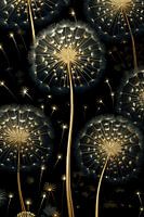 Een digitaal schilderij van gouden paardenbloemen . Dit werk is geïnspireerd door de vormen en het kleurenpallet van de Art Deco beweging. Het werk geeft een dromerige en klassieke uitstraling aan uw interieur!