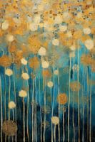 Dit werk straalt een warme sereniteit uit met zijn combinatie van gouden pluizenbollen en diepe blauwtinten. De delicate pluizen lijken gewichtloos te zweven, terwijl ze een gevoel van rust en harmonie oproepen. De achtergrond, met zijn mengeling van zachte gele en blauwe nuances, versterkt de etherische kwaliteit van het werk. Het geheel brengt een kalmerende en verfrissende sfeer in elke ruimte, ideaal voor wie een vleugje natuurlijke schoonheid en zachtheid aan zijn interieur wil toevoegen.