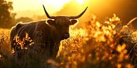 Koop dit landschapskunstwerk Gouden Silhouet van een Schotse Hooglander van Vlindertuin-Art op canvas, aluminium dibond, (ingelijste) fotoprint, behang en ArtFrame, op maat geprint in Fine-Art kwaliteit.