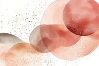 Dit abstracte kunstwerk creëert een dromerige, kosmische sfeer met transparante, overlappende cirkels in zachte roze en beige tinten. Gouden spikkels suggereren stardust, terwijl de luchtige compositie gewichtloosheid en sereniteit oproept. Zachte kleurenovergangen en subtiele texturen geven diepte aan het werk. Het harmonieuze samenspel van geometrische vormen en organische elementen voelt zowel modern als tijdloos aan. Het nodigt uit tot contemplatie en roept associaties op met hemellichamen of microscopische structuren, waardoor het een brug slaat tussen het kosmische en het intieme.