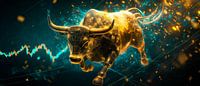 Over ‘Gouden Stier met financiële grafiek - Dynamisch’ van Poster Art Shop