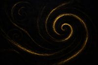 De vloeiende penseelstreken van goud bewegen sierlijk over een diepzwarte achtergrond, alsof vloeibaar licht zich door het duister slingert.…