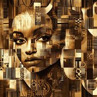 Gouden Symboliek vertelt het verhaal van een gezicht dat verschijnt uit een zee van patronen, lijnen en texturen — alsof de identiteit van de afgebeelde vrouw is opgebouwd uit talloze lagen geschiedenis, cultuur en symboliek. Het portret is geen enkelvoudig beeld, maar een samengesteld geheel van fragmenten die samen een krachtig,…