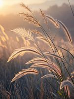 Dit prachtige kunstwerk vangt de rustige schoonheid van een grasveld tijdens het gouden uur. Het zachte, etherische licht van de ondergaande zon baadt het tafereel in een warme, zachte gloed en benadrukt de delicate, vederlichte pluimen van pampagras of riet dat wiegt in een licht briesje. De voorgrond is scherp en laat de ingewikkelde texturen en subtiele kleurvariaties van de planten zien, van lichtgoud tot zachtroze. De achtergrond versmelt in een mooie, wazige waas en creëert een gevoel van diepte en rust. Deze afbeelding is perfect voor iedereen die houdt van de natuur, serene landschappen of een vleugje rustgevende, natuurlijke schoonheid wil toevoegen aan zijn of haar ruimte.