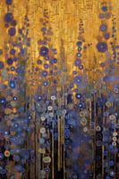 Dit werk toont een magisch samenspel van kleuren waarbij gouden tinten de achtergrond vormen voor een bos van blauwe en paarse cirkelvormige structuren. De combinatie van deze kleuren creëert een levendige en toch rustgevende sfeer. De abstracte vormen suggereren een weelderig veld van bloemen, badend in het gouden licht van de zon. Dit werk voegt een vleugje kleur en vitaliteit toe aan elke ruimte, en nodigt uit tot reflectie en bewondering.