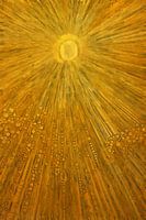 Dit werk toont een stralende zon in het centrum, van waaruit gouden stralen zich verspreiden over de hele compositie. De achtergrond is rijk aan warme gele en oranje tinten die een gevoel van warmte en energie uitstralen. De delicate lijnen en stippen in de zonnestralen geven het geheel een dynamische en levendige uitstraling. Perfect voor het toevoegen van een vleugje zonneschijn aan elke ruimte, of het nu een modern of klassiek interieur is.