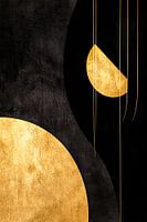 Dit elegante abstracte ontwerp combineert luxe gouden accenten met een minimalistisch zwart achtergrond, waardoor het een stijlvolle toevoeging is aan elk modern interieur. De geometrische vormen en subtiele lijnen zorgen voor een gevoel van balans en harmonie. Het ontwerp is ideaal voor woonruimtes, kantoren of slaapkamers en voegt een vleugje verfijning toe zonder te overheersen. Met zijn moderne esthetiek past dit kunstwerk perfect in een minimalistisch of eigentijds interieur. Het creëert een chique sfeer en kan eenvoudig worden gecombineerd met andere decorstukken. Laat dit stuk het statement zijn in je ruimte en geniet van de tijdloze uitstraling.