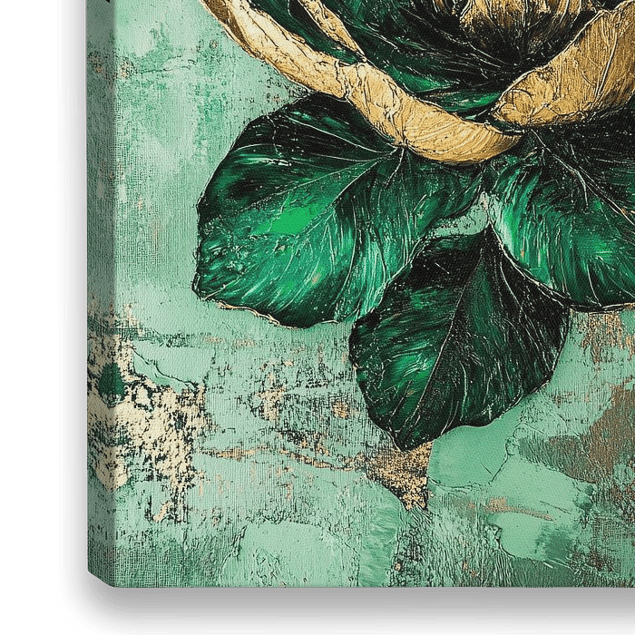 Deze prachtige creatie combineert abstracte kunst met de natuurlijke schoonheid van een bloem. Het opvallende gebruik van gouden accenten en verschillende tinten groen geeft het ontwerp een luxe en eigentijdse uitstraling. Perfect voor een moderne woonruimte of hal, voegt het een vleugje verfijning en artistieke flair toe. Deze kunst is…