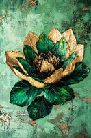 Deze prachtige creatie combineert abstracte kunst met de natuurlijke schoonheid van een bloem. Het opvallende gebruik van gouden accenten en verschillende tinten groen geeft het ontwerp een luxe en eigentijdse uitstraling. Perfect voor een moderne woonruimte of hal, voegt het een vleugje verfijning en artistieke flair toe. Deze kunst is…