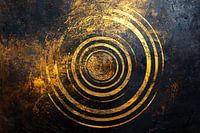 Dit opvallende kunstwerk combineert de elegantie van goud met de kracht van abstracte vormen. Het ontwerp bestaat uit meerdere concentrische cirkels die een hypnotiserend effect creëren, alsof ze in beweging zijn. De diepe, donkere achtergrond contrasteert prachtig met de felle goudtinten, waardoor het werk een luxe en moderne uitstraling krijgt. Het gebruik van metalen goudkleur zorgt voor een verfijnde en gedurfde stijl die perfect past in een eigentijds interieur. Dit kunstwerk is ideaal voor wie een minimalistische en toch dynamische toevoeging wil in ruimtes zoals een slaapkamer, kantoor of woonkamer. Het voegt zowel warmte als een vleugje mysterie toe aan elke omgeving.