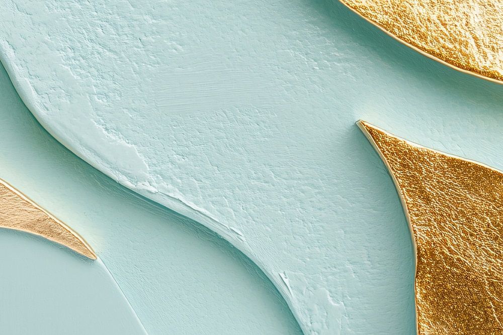 Dit unieke ontwerp combineert zachte pastelkleuren met strakke, moderne vormen en een vleugje luxe door de goudkleurige metallic accenten. Het patroon bestaat uit golvende lijnen die op een elegante manier over de achtergrond lopen, wat een gevoel van verfijning en rust uitstraalt. De combinatie van zachte texturen en het glinsterende goud maakt het een perfect decoratief stuk voor een moderne interieurstijl. Het ontwerp is ideaal voor ruimtes die een subtiele, maar toch stijlvolle uitstraling willen geven, zoals een slaapkamer, kantoor of woonkamer. De abstracte vormen en het kleurcontrast tussen het glanzende goud en het zachte lichtblauw zorgen voor een boeiend visueel effect dat zowel rustgevend als inspirerend werkt.