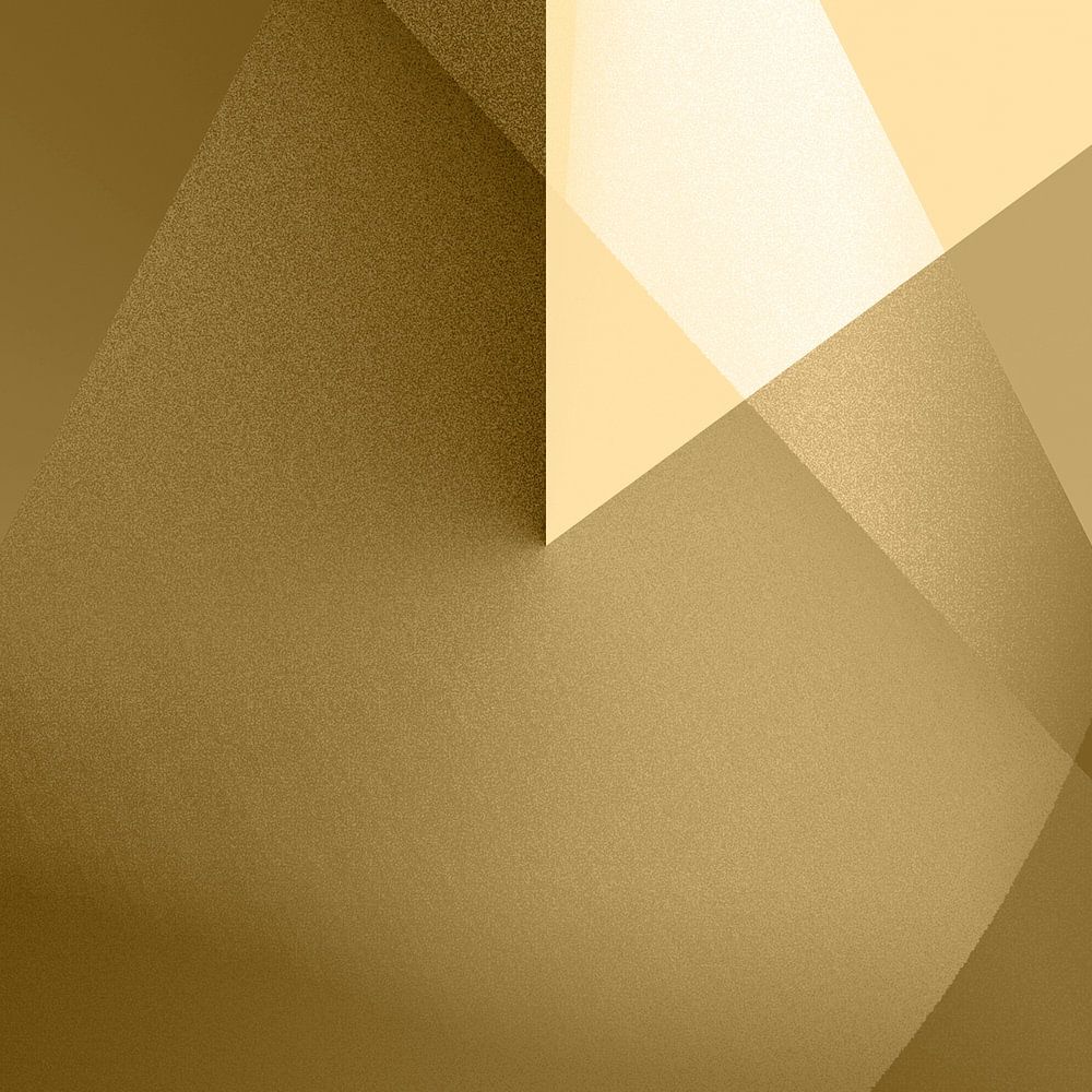 Abstract geometrisch landschapschilderij in maanlicht in beige, crème, goud, brons, oker en okergeel.