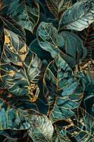 Met gouden accenten die de organische vormen van de bladeren volgen, combineert dit kunstwerk elementen uit de natuur naadloos met een luxueuze esthetiek. De diepgroene tinten en delicate gouden lijnen creëren een betoverend contrast dat elegantie en rust uitstraalt. Ideaal voor mensen met een voorliefde voor botanische kunst en een oog…