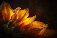Gloeiende zonnebladeren ontvouwen zich in een warm, gouden licht en springen onmiddellijk in het oog. De zachte, gebogen vormen nodigen uit tot kalmte en contemplatie. Dit kunstwerk is ideaal voor de slaapkamer of een rustig toevluchtsoord en creëert een harmonieuze en uitnodigende sfeer.