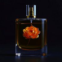 Dit kunstwerk heeft een luxe en visueel verbluffende parfumfles die elegantie combineert met natuurlijke schoonheid. Het is gemaakt van kristalhelder glas en bevat een diep amberkleurige vloeistof die subtiel glinstert en een nobel aura creëert. Een gouden roos lijkt te zweven in dit warme elixer - vakkundig ontworpen met levensechte,…