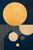 Een geometrische compositie van cirkels ontvouwt zich in een harmonieus samenspel van diepblauw en glanzend goud. De glinsterende vormen stralen rust en elegantie uit, terwijl de contrasterende maten dynamiek toevoegen aan de kamer. Perfect voor een moderne woonkamer om een opvallend accent te creëren en inspirerende gesprekken aan te moedigen.