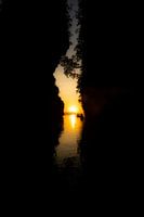 Deze foto is genomen in Krabi Thailand. Ik moest er 6 km voor pedellen in een wiebelige kano, maar het was de moeite waard. Ik voer door de bergen wanden en kwam de ene na de andere mooie plekken terecht. Ik wist dat de zon ergens tussen twee bergwanden zou zakken, maar je moet dan wel geluk hebben dat het perfect weer is. Geen wolkje…
