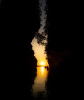 Deze foto is genomen in Krabi Thailand. Ik moest er 6 km voor pedellen in een wiebelige kano, maar het was de moeite waard. Ik voer door de bergen wanden en kwam de ene na de andere mooie plekken terecht. Ik wist dat de zon ergens tussen twee bergwanden zou zakken, maar je moet dan wel geluk hebben dat het het perfect weer is. Geen…