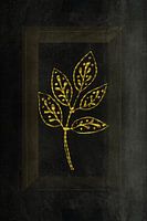 Een digitale beeldbewerking met de kleuren goud/geel op zwart.