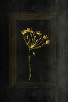 Een digitale beeldbewerking met de kleuren goud/geel op zwart.