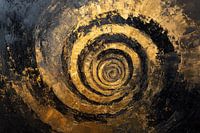 Dit abstracte kunstwerk trekt direct de aandacht met zijn krachtige spiraalvorm en rijke kleurenpalet van goud en zwart. De beweging en dynamiek van de vormen geven het geheel een levendige, energieke uitstraling die zowel modern als tijdloos aanvoelt. Het spel van licht en schaduw in de verfstreken zorgt voor een tastbare textuur, waardoor het kunstwerk diepte en dimensie krijgt. Dit ontwerp past perfect in een hedendaags interieur, vooral in ruimtes waar een gevoel van stijl en energie gewenst is, zoals een woonkamer of kantoor. Het straalt luxe en verfijning uit en kan dienen als een krachtig visueel middelpunt in iedere ruimte.