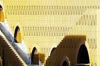 De buitenkant van de nieuwe parkeergarage 'Hart van de Waalsprong' in Lent, Nijmegen-Noord.