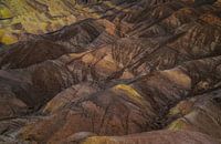 Golvende heuvelruggen nabij Zabrinski Point, sierlijk getooid in goud, geel en brons.