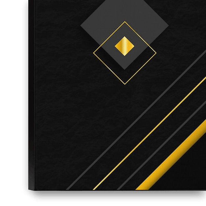 Koop dit digital art kunstwerk Gouden geometrie op zwarte achtergrond van Mixed media vector arts als reproductie op canvas, aluminium dibond, (ingelijste) fotoprint, behang en ArtFrame, op maat geprint in Fine-Art kwaliteit.