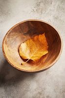 Over ‘Gouden herfstblad in houten kom’ van Imperial Art House