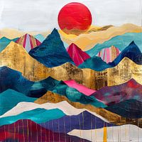 Dit kleurrijke kunstwerk vat de essentie van abstract expressionisme en verbeeldt een prachtig berglandschap in levendige tinten roze, blauw en goud. De gouden accenten geven het schilderij een verfijnde en toch moderne uitstraling, terwijl de levendige kleuren de dynamiek en energie van de natuur weerspiegelen. De compositie nodigt de kijker uit om zich onder te dompelen in een surrealistische droomwereld waarin elke piek en elke heuvel een uniek samenspel van licht en kleur is. Perfect voor liefhebbers van abstracte en moderne kunst die op zoek zijn naar een opvallend statement.